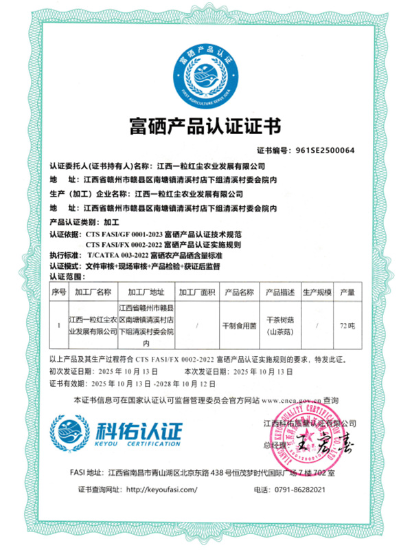 江西一粒紅塵農業發展有限公司是一家總部位于江西省贛縣的現代農業多元型企業,專注于食用菌的研發、種植、深加工、貿易、研教培農文旅等全產業鏈發展。公司秉承“健康、綠色共享共贏”的核心價值觀,致力于引領鄉村振興之路,旨在成為......